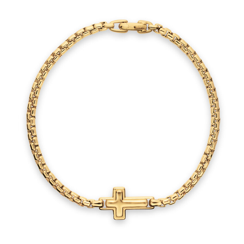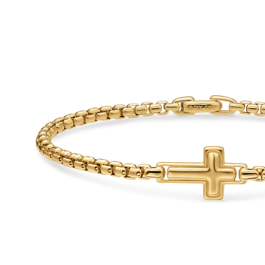 Cross Station Bracelet in 18K Yellow Gold, 3.4mm